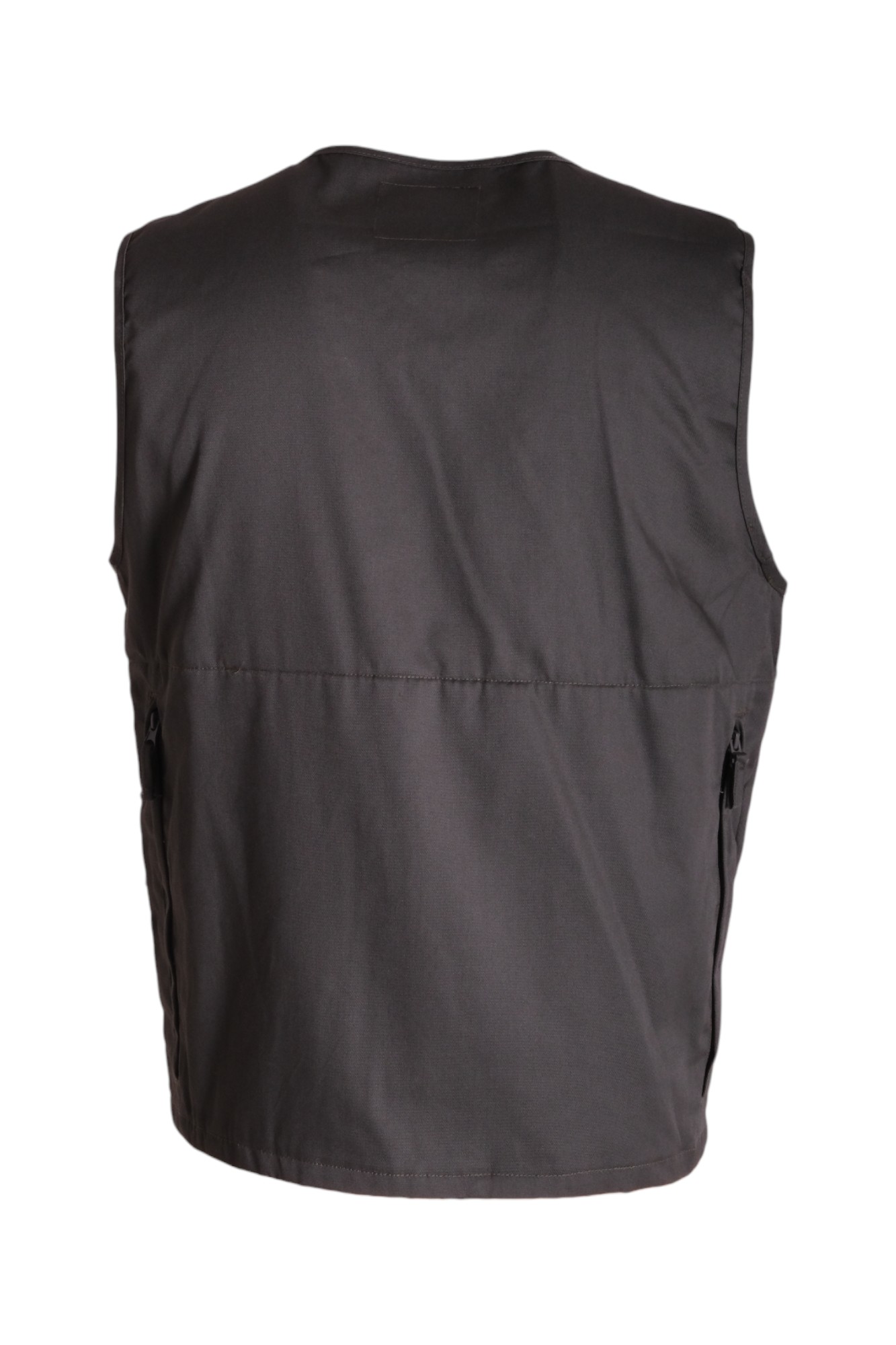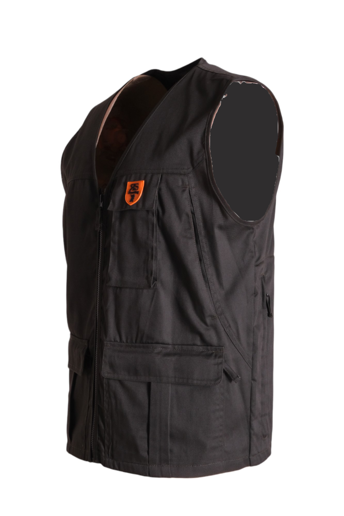 Gilet tessuto misto cotone verde, 2 tasche sul dorso di 20 cm. 2 tasconi al fondo con zip tasca porta palmare e carniere dietro con zip