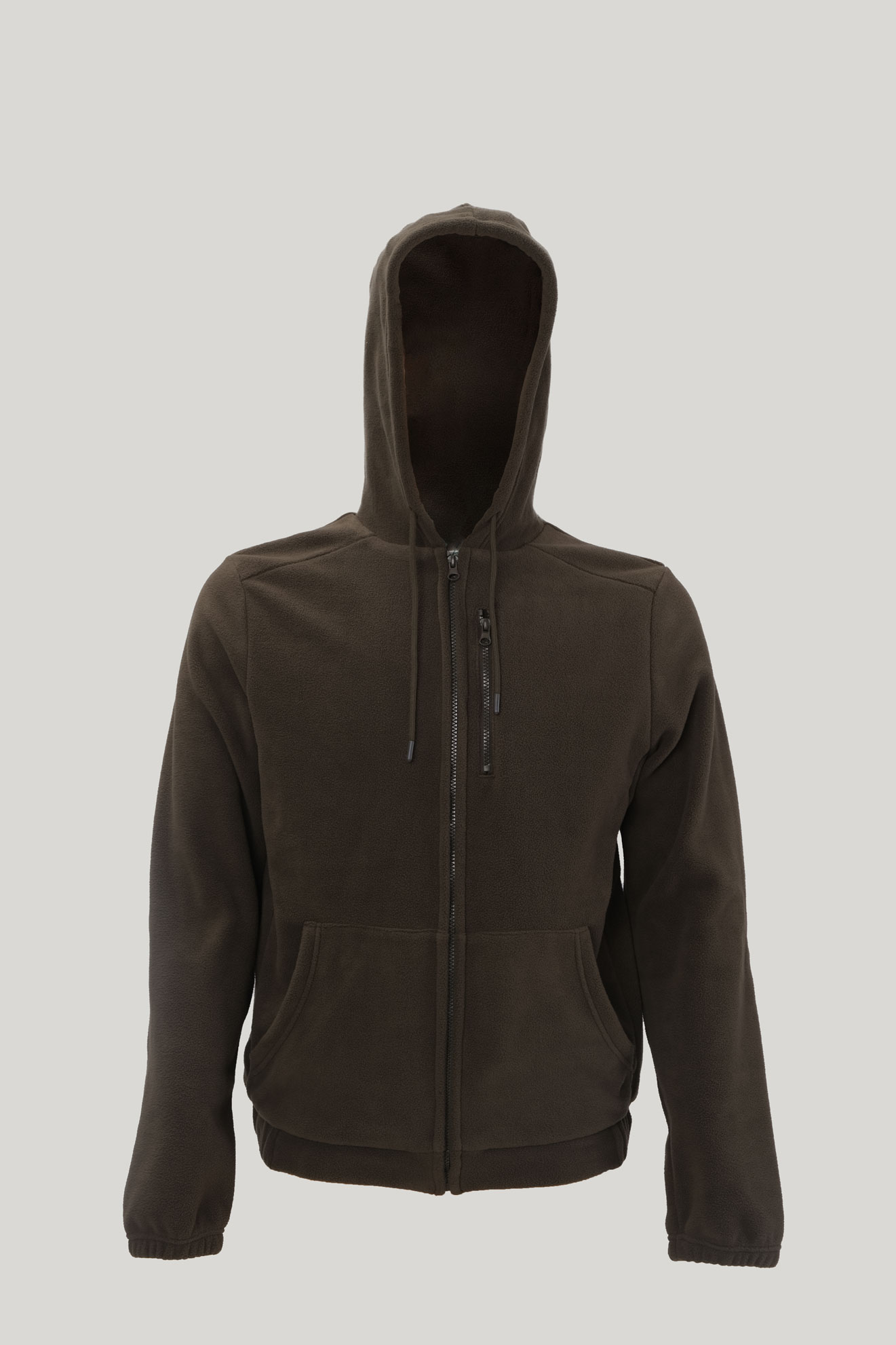 Pile in ottimo tessuto, caldo, con applicazioni in tessuto nero; zip con doppio cursore, coulisse al fondo, 2 comode tasche laterali con zip e tasca lato cuore con zip.
