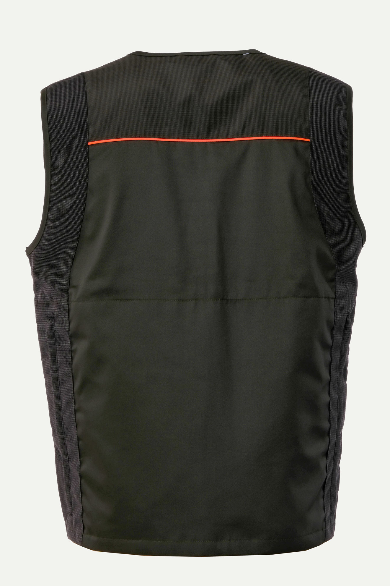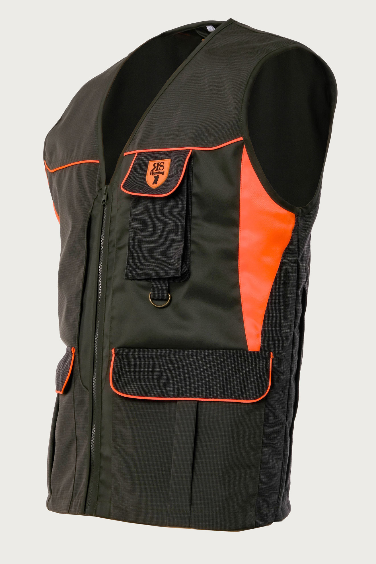 Gilet in color verde, estremamente protettivo grazie al tessuto tecnico che ricopre quasi per intero la superficie. Resistente ai rovi e impermeabile. Taschino porta GPS lato cuore. Tasconi frontali e tasche nascoste con apertura verticale.